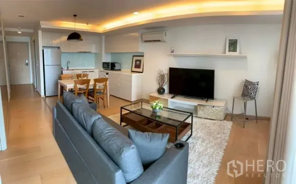คอนโด 2 ห้องนอน 2 ห้องน้ำ ขนาดใช้สอย 76 ตร.ม. ทำเลเขตวัฒนา ใกล้ BTS ทองหล่อ พื้นที่นั่งเล่นและรับประทานอาหารแบบเปิดโล่งสว่าง โปร่งสบาย เชื่อมต่อครัวบิวท์อินพร้อมเตา เครื่องดูดควัน และพื้นที่เก็บของครบครัน ห้องนอนมาสเตอร์พร้อมตู้เสื้อผ้าบิวท์อิน ห้องน้ำดีไซน์โมเดิร์น และระเบียงส่วนตัวชมวิวสกายไลน์กรุงเทพฯ ส่วนกลางครบทั้งสระว่ายน้ำ ฟิตเนส ล็อบบี้รักษาความปลอดภัย และระบบรักษาความปลอดภัย 24 ชม. พร้อมที่จอดรถ