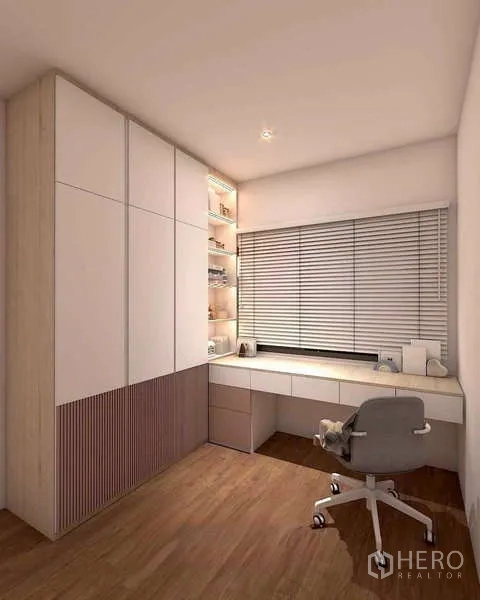โฮมออฟฟิศใจกลางบางกะปิ 4 ห้องนอน 3 ห้องน้ำ พื้นที่ใช้สอย 200 ตร.ม. จัดสรรบนที่ดิน 26 ตร.วา (ประมาณ 104 ตร.ม. หรือราว 0.065 ไร่) พื้นที่ยืดหยุ่นหลายระดับ รองรับทั้งอยู่อาศัยและทำงาน มีห้องส่วนตัวสำหรับผู้บริหารหรือห้องนอน โซนเปิดโล่งสำหรับทีมงาน/รับรองแขก มุมแพนทรี และพื้นกระเบื้องดูแลง่าย เหมาะกับธุรกิจขนาดเล็ก สตูดิโอ หรือคลินิก ทำเลสะดวก เดินถึง MRT ลาดพร้าว 101 เดินทางทั่วกรุงเทพฯ ได้รวดเร็ว