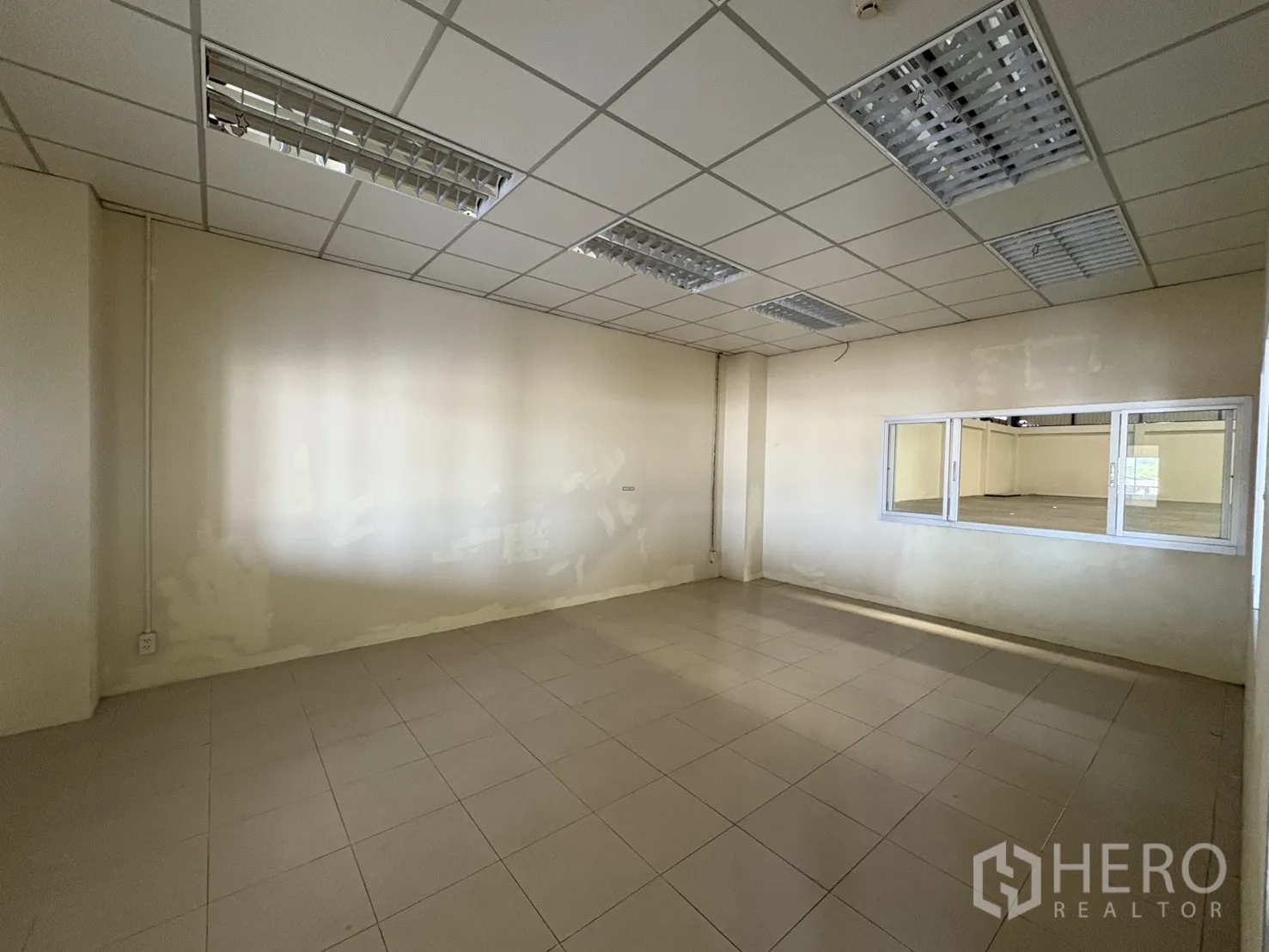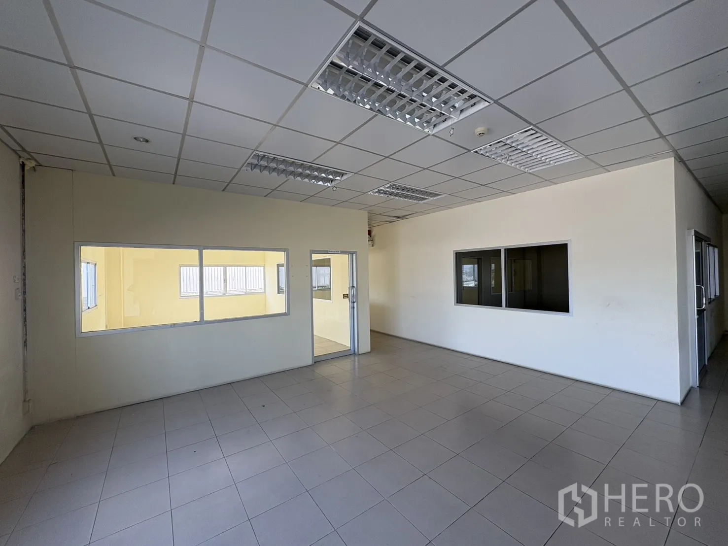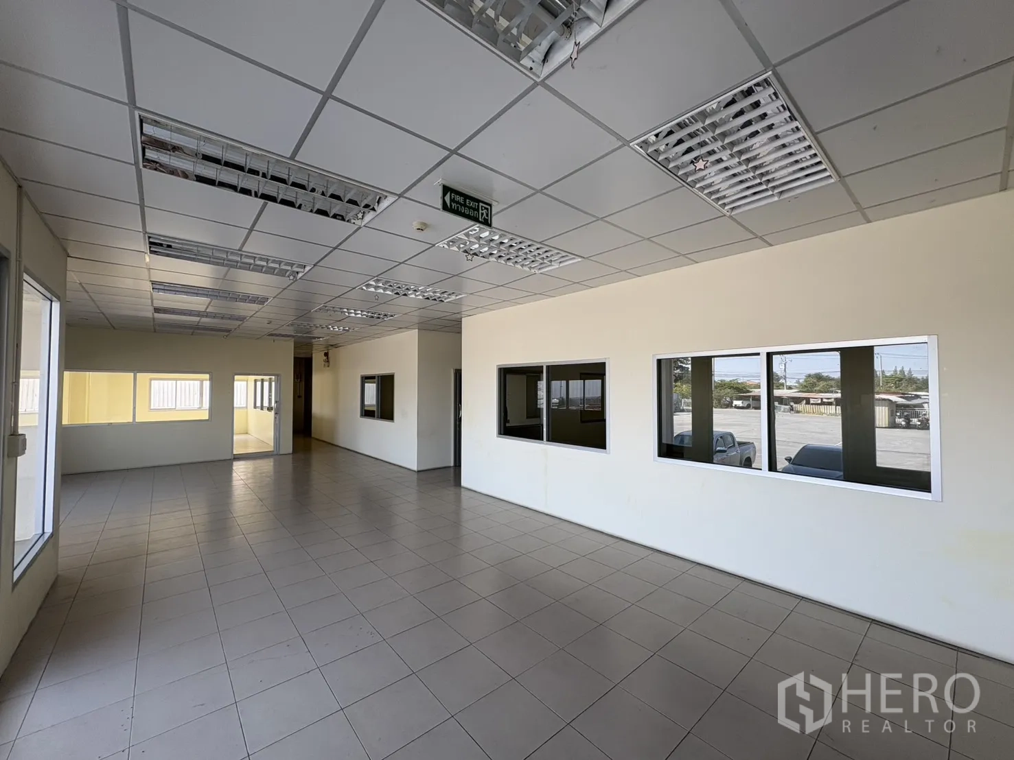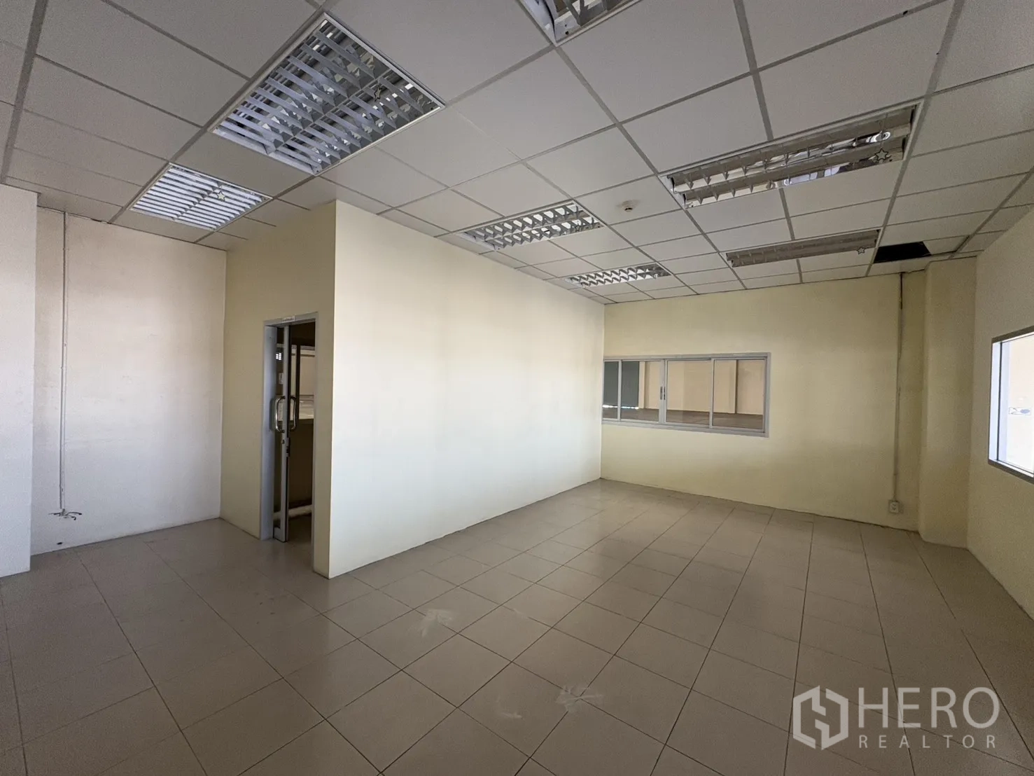 โกดังให้เช่าในทำเลบางบ่อ สมุทรปราการ พื้นที่ใช้สอย 2,232 ตร.ม. รวมออฟฟิศ 2 ชั้น ความสูงเคลียร์ประมาณ 8–10 ม. พื้นรับน้ำหนัก 3 ตัน/ตร.ม. พร้อมช่องโหลดแบบยกระดับ 4 จุด และทางลาด 1 จุด ประตูชัตเตอร์ไฟฟ้าและมือดึง ยกระดับพื้นราว +1.30 ม. มีระบบตรวจจับควันและทางหนีไฟครบครัน ลานฮาร์ดสแตนด์ด้านนอกประมาณ 3,226 ตร.ม. รองรับการจอดและกลับรถเทรลเลอร์ได้สะดวก