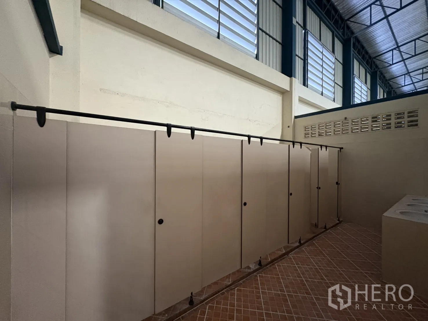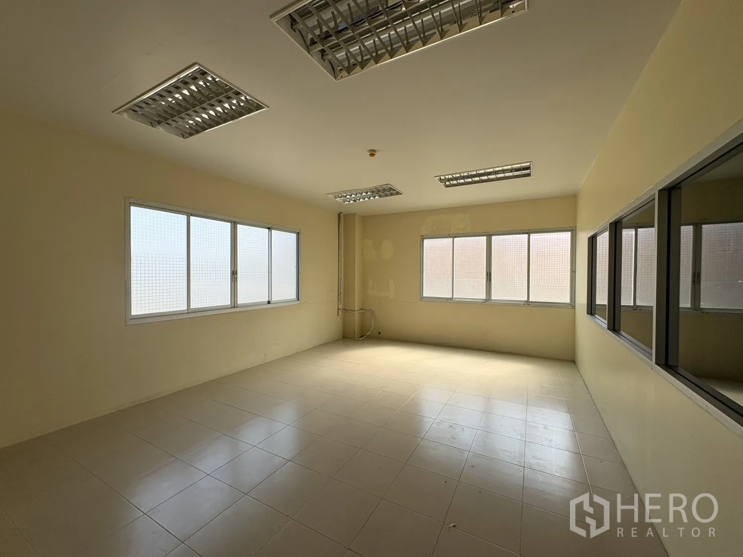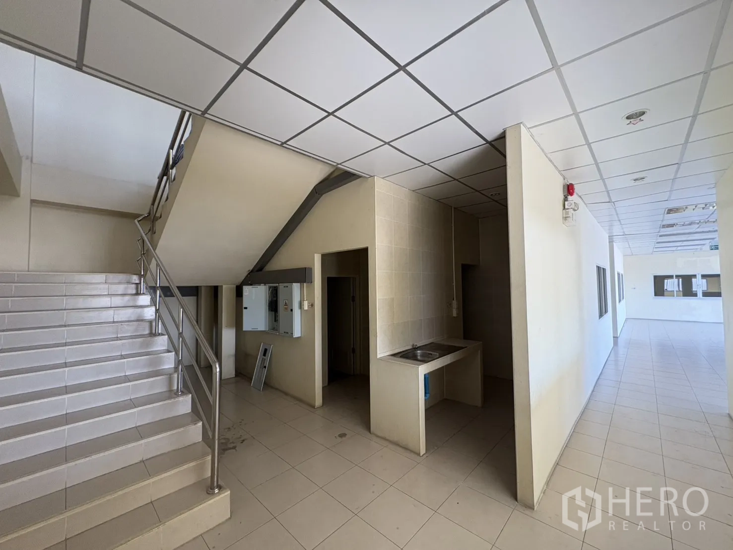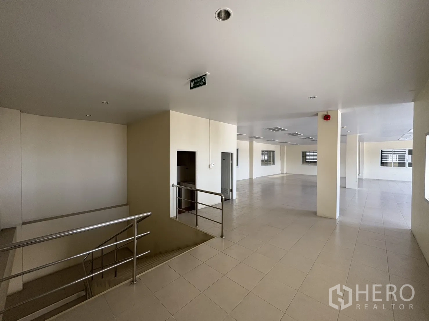 โกดังให้เช่าในทำเลบางบ่อ สมุทรปราการ พื้นที่ใช้สอย 2,232 ตร.ม. รวมออฟฟิศ 2 ชั้น ความสูงเคลียร์ประมาณ 8–10 ม. พื้นรับน้ำหนัก 3 ตัน/ตร.ม. พร้อมช่องโหลดแบบยกระดับ 4 จุด และทางลาด 1 จุด ประตูชัตเตอร์ไฟฟ้าและมือดึง ยกระดับพื้นราว +1.30 ม. มีระบบตรวจจับควันและทางหนีไฟครบครัน ลานฮาร์ดสแตนด์ด้านนอกประมาณ 3,226 ตร.ม. รองรับการจอดและกลับรถเทรลเลอร์ได้สะดวก