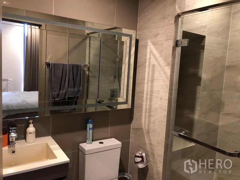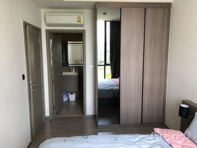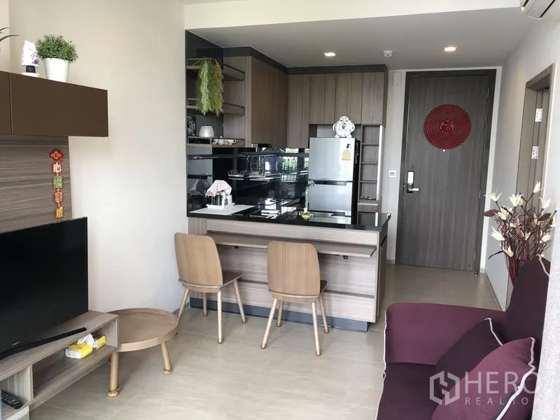คอนโด 1 ห้องนอน 1 ห้องน้ำ ขนาด 37 ตร.ม. ที่ Mori Haus ในย่านวัฒนา เดินทางสะดวกถึง BTS อ่อนนุชด้วยรถรับส่งของคอมมูนิตี้ ผังห้องลงตัว พื้นที่นั่งเล่นและรับประทานอาหารแบบโอเพ่น ห้องสว่างด้วยกระจกเต็มบาน เชื่อมต่อสู่ระเบียงส่วนตัวมุมมองสวน ครัวบิวต์อินพร้อมเตาไฟฟ้า เครื่องดูดควัน ไมโครเวฟ และตู้เก็บของครบ ห้องน้ำสมัยใหม่พร้อมตู้กระจกอาบน้ำ เหมาะสำหรับคนโสดหรือคู่รักที่มองหาที่อยู่อาศัยโลว์ไรส์เงียบสงบใจกลางสุขุมวิท