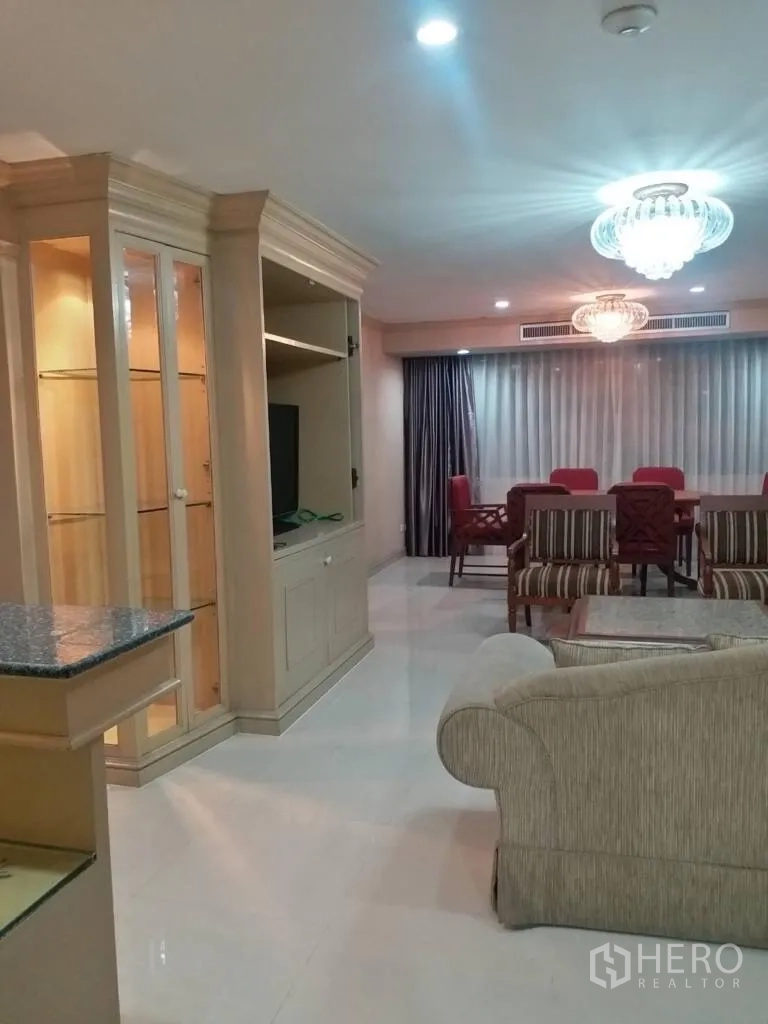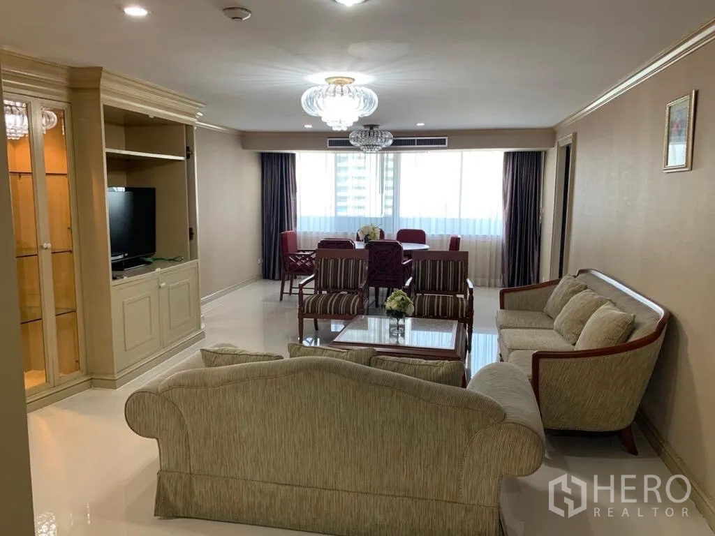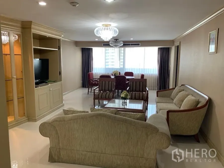 คอนโดมิเนียมขนาด 182 ตร.ม. 3 ห้องนอน 3 ห้องน้ำ ที่ Empire House ในเขตวัฒนา โดดเด่นด้วยพื้นที่ใช้สอยกว้างขวาง ใกล้ BTS เอกมัย ห้องนั่งเล่นและรับประทานอาหารโปร่งโล่งด้วยหน้าต่างบานใหญ่ ครัวบิวท์อินใช้งานสะดวก และระเบียงขนาดเหมาะสำหรับพักผ่อน ห้องนอนทั้งสามมีพื้นที่เก็บของเพียงพอ พร้อมห้องน้ำสไตล์โมเดิร์น สิ่งอำนวยความสะดวกภายในโครงการมีสระว่ายน้ำ ฟิตเนส รปภ. 24 ชม. และที่จอดรถ