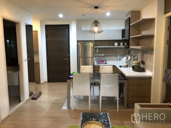 ใช้ชีวิตใจกลางวัฒนา กับคอนโด 2 ห้องนอน 2 ห้องน้ำ พื้นที่ใช้สอย 102 ตร.ม. พื้นไม้จริงให้บรรยากาศอบอุ่น พื้นที่นั่งเล่นและทานข้าวแบบโอเพ่นแปลนเชื่อมต่อถึงกัน ประตูบานเลื่อนกระจกเต็มผนังเปิดออกสู่ระเบียง รับแสงธรรมชาติและวิวต้นไม้ในเมืองอย่างเป็นส่วนตัว ผนังบิวท์อินสำหรับวางทีวีและชั้นเก็บของช่วยจัดระเบียบพื้นที่ ห้องนอนหลักโปร่งสบายพร้อมตู้เสื้อผ้า ส่วนห้องนอนที่สองยืดหยุ่นสำหรับห้องทำงานหรือห้องรับรอง เฟอร์นิเจอร์โทนสบายตา พร้อมเข้าอยู่ทันที