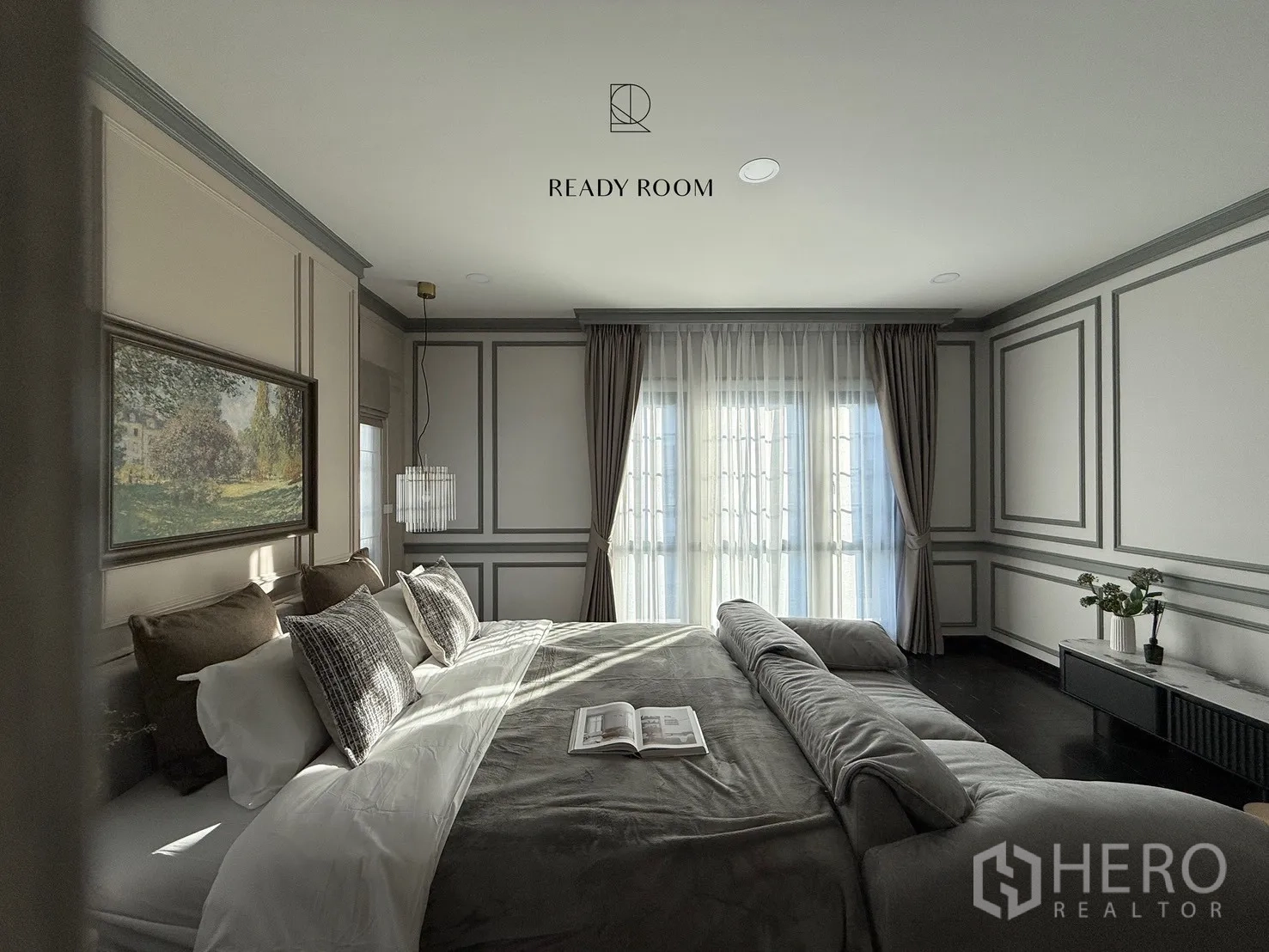 บ้านเดี่ยวหรู 4 ห้องนอน 5 ห้องน้ำ พื้นที่ใช้สอย 430 ตร.ม. ตั้งอยู่บนที่ดิน 105 ตร.วา (ประมาณ 420 ตร.ม. หรือราว 0.26 ไร่) ในบางพลี สมุทรปราการ โถงรับแขกเพดานสูงสองชั้นพร้อมโคมระย้าคริสตัล ห้องทานอาหารโต๊ะหินอ่อน และครัวบิลท์อินพร้อมไอส์แลนด์ มีห้องพักผ่อนแยกสำหรับครอบครัว และห้องนอนมาสเตอร์พร้อมมุมแต่งตัวและโต๊ะเครื่องแป้งดีไซน์
