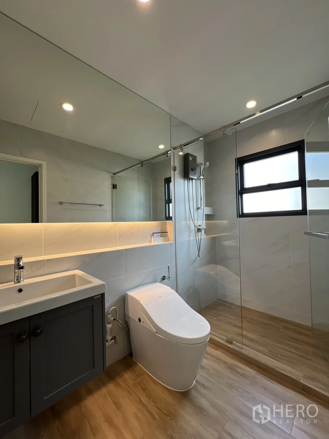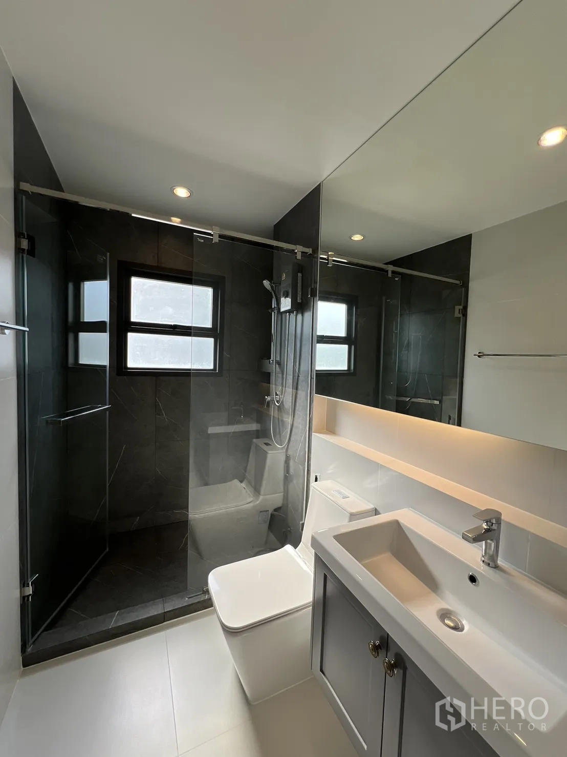 ครัวปิดแยกเป็นสัดส่วน มาพร้อมเตาแก๊ส เครื่องดูดควัน อ่างล้างจานคู่ ตู้เก็บของจำนวนมาก และเครื่องใช้ไฟฟ้าขนาดใหญ่ ห้องนอนทุกห้องสว่าง โปร่ง แอร์ครบ โดยห้องนอนใหญ่มีระเบียงส่วนตัว ห้องน้ำดีไซน์โมเดิร์น กั้นอาบน้ำกระจก เคาน์เตอร์ล้างหน้าและกระจกไฟในตัว มีโถงทางเดินพร้อมตู้เก็บของและช่องบันไดรับแสงธรรมชาติ ภายนอกเป็นบ้านสองชั้น หน้าบ้านรั้วรอบและมีที่จอดรถในร่ม