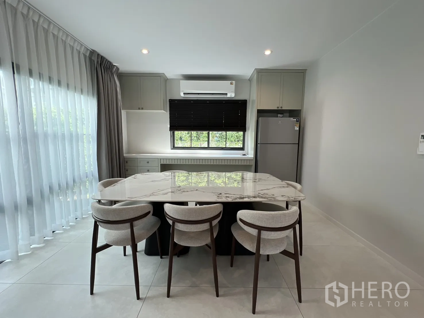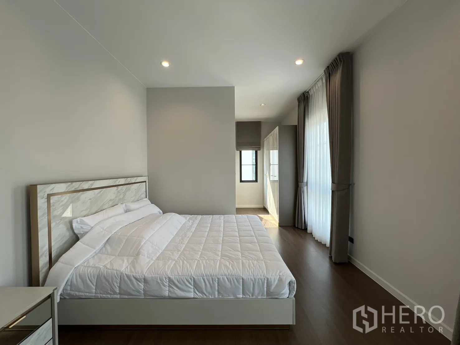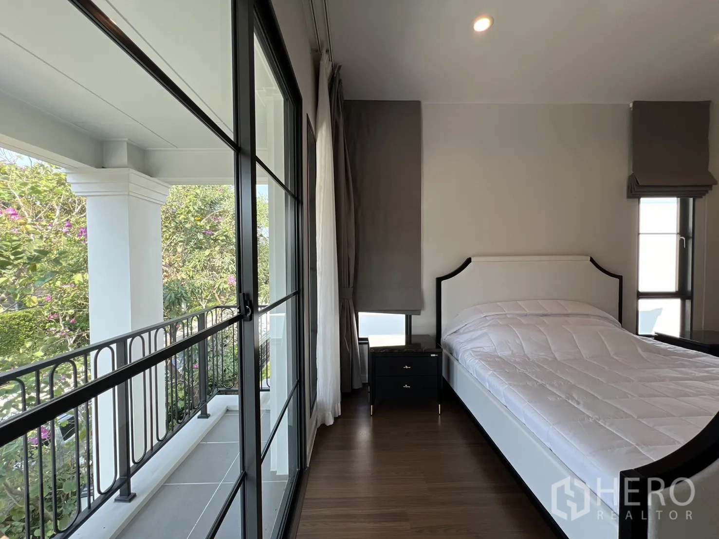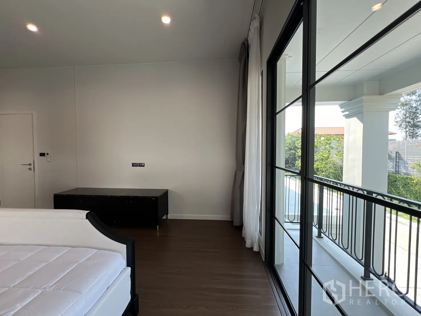 บ้านเดี่ยวให้เช่าในอำเภอบางพลี จังหวัดสมุทรปราการ พื้นที่ใช้สอย 247 ตร.ม. ที่ดิน 59 ตร.ว. (ประมาณ 236 ตร.ม. หรือราว 0.15 ไร่) ภายในเป็นโซนนั่งเล่นและทานอาหารแบบเปิดโล่ง หน้าต่างบานใหญ่พร้อมม่านโปร่งและทึบ พื้นโทนสว่าง และฝ้าหลุมไฟซ่อน ให้บรรยากาศหรูหราเหมาะแก่การพักผ่อนและรับรองแขก จัดสรร 4 ห้องนอน 4 ห้องน้ำ แยกเป็นสัดส่วนสองชั้นเพื่อความเป็นส่วนตัวของสมาชิกในบ้าน