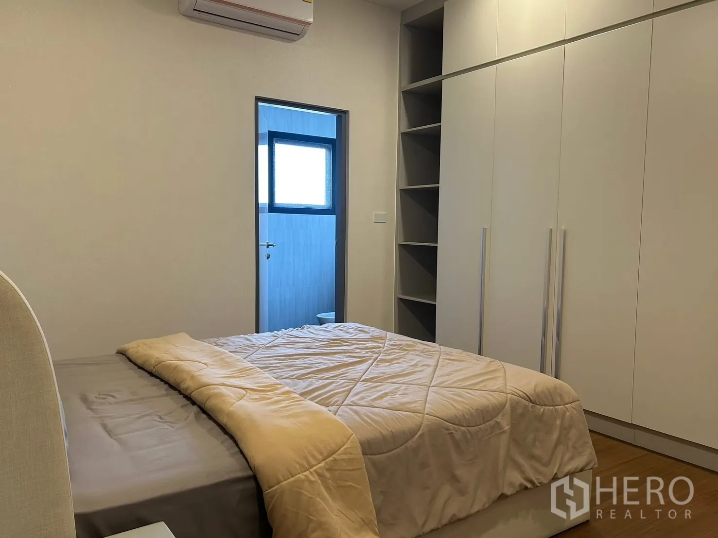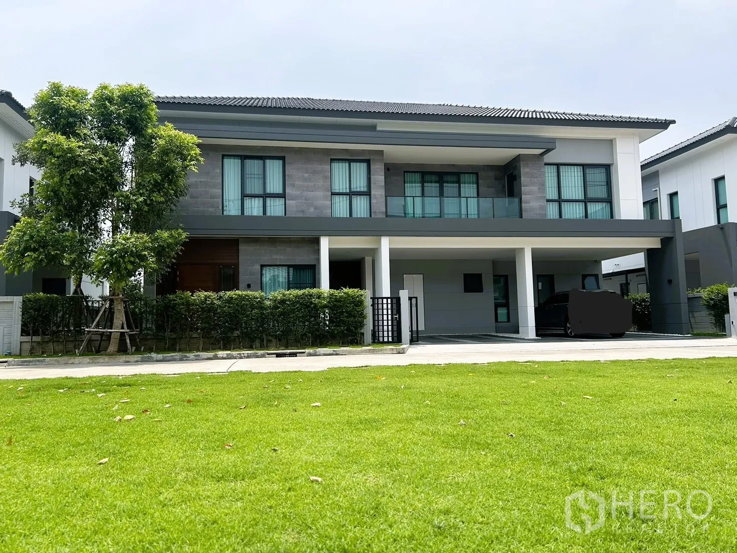 สัมผัสการอยู่อาศัยสมัยใหม่กับบ้านเดี่ยวให้เช่าในอำเภอบางพลี จังหวัดสมุทรปราการ พื้นที่ใช้สอย 416 ตร.ม. บนที่ดิน 90 ตร.ว. (ประมาณ 360 ตร.ม. หรือราว 0.23 ไร่) แปลนบ้านมี 5 ห้องนอน 6 ห้องน้ำ เหมาะสำหรับครอบครัวใหญ่หรือผู้ที่ต้องการห้องทำงานและห้องรับรอง บรรยากาศโปร่งสบายด้วยช่องแสงขนาดใหญ่และเพดานที่ให้ความโล่ง