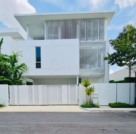 这栋位于春武里府Sattahip县的 Spring Town Pool Villa 项目别墅,尽显现代生活的宽敞舒适。别墅拥有4间卧室和5间浴室,占地面积100平方哇,建筑面积达236平方米。别墅内明亮开阔的起居空间,设有时尚的休息区,配以大窗户、雅致的木地板以及装有嵌入式照明的高挑天花板。厨房设备齐全,配有木质橱柜和大型用餐岛台,非常适合家庭聚餐。每间卧室都经过精心设计,暖色调的木质装饰与充足的自然光线相得益彰,营造出放松惬意的氛围。浴室则采用简洁时尚的现代风格,白色瓷砖、玻璃淋浴间和双洗手盆一应俱全。室外,宁静的白墙庭院中设有一座私人游泳池,是娱乐休闲或放松身心的理想之地。别墅还设有带顶棚的停车区域。别墅坐落于宁静的社区之中,对于寻求海边舒适时尚生活的家庭而言,堪称完美之选。