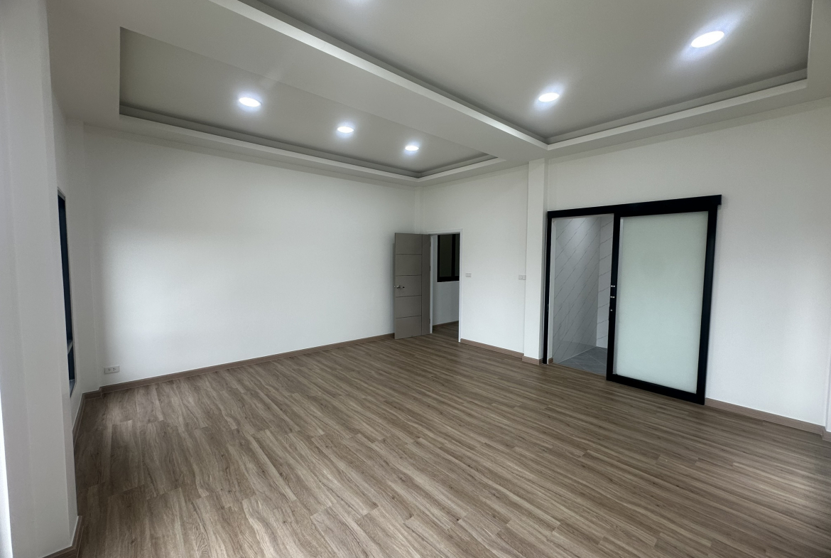 出售:位于巴吞他尼府空銮县的现代化仓库及办公楼。该物业土地面积为56平方哇,总使用面积达280平方米。建筑采用时尚的现代设计,拥有两层办公区域,面积为120平方米;仓库面积为160平方米,配备宽幅卷帘门,便于卡车进出,适合物流作业;另有56平方米的私人停车区、2间卧室、3间浴室和厨房。该物业坐落于兰实-那空那育路,周边设施便利,毗邻 Future Park Rangsit 购物中心。对于寻求在巴吞他尼府设立战略仓库及办公地点、且需快速通往高速公路和曼谷都市圈的中小型企业而言,此物业堪称理想之选。
