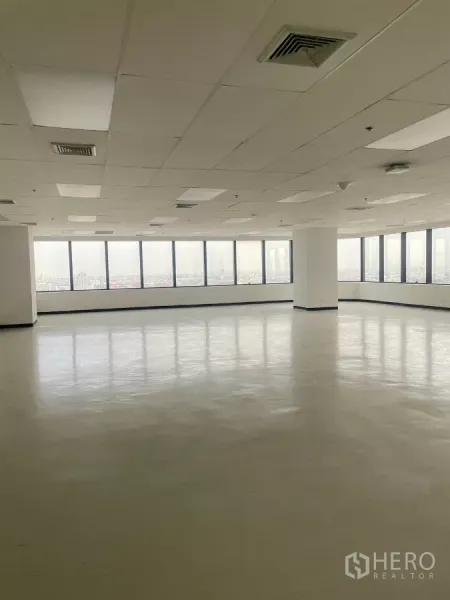 在曼谷汇权区安置您的团队:这处办公空间可用面积约1,800平方米,步行即达Ratchadaphisek地铁站。占地100平方哇(约400平方米,约0.25莱),室内为明亮开放式楼层,抛光瓷砖地面、LED照明、大幅黑框窗、配电梯与宽阔楼梯。灵活平面包含5间独立房间与5个卫浴,适合高管办公室、会议室与后台空间。