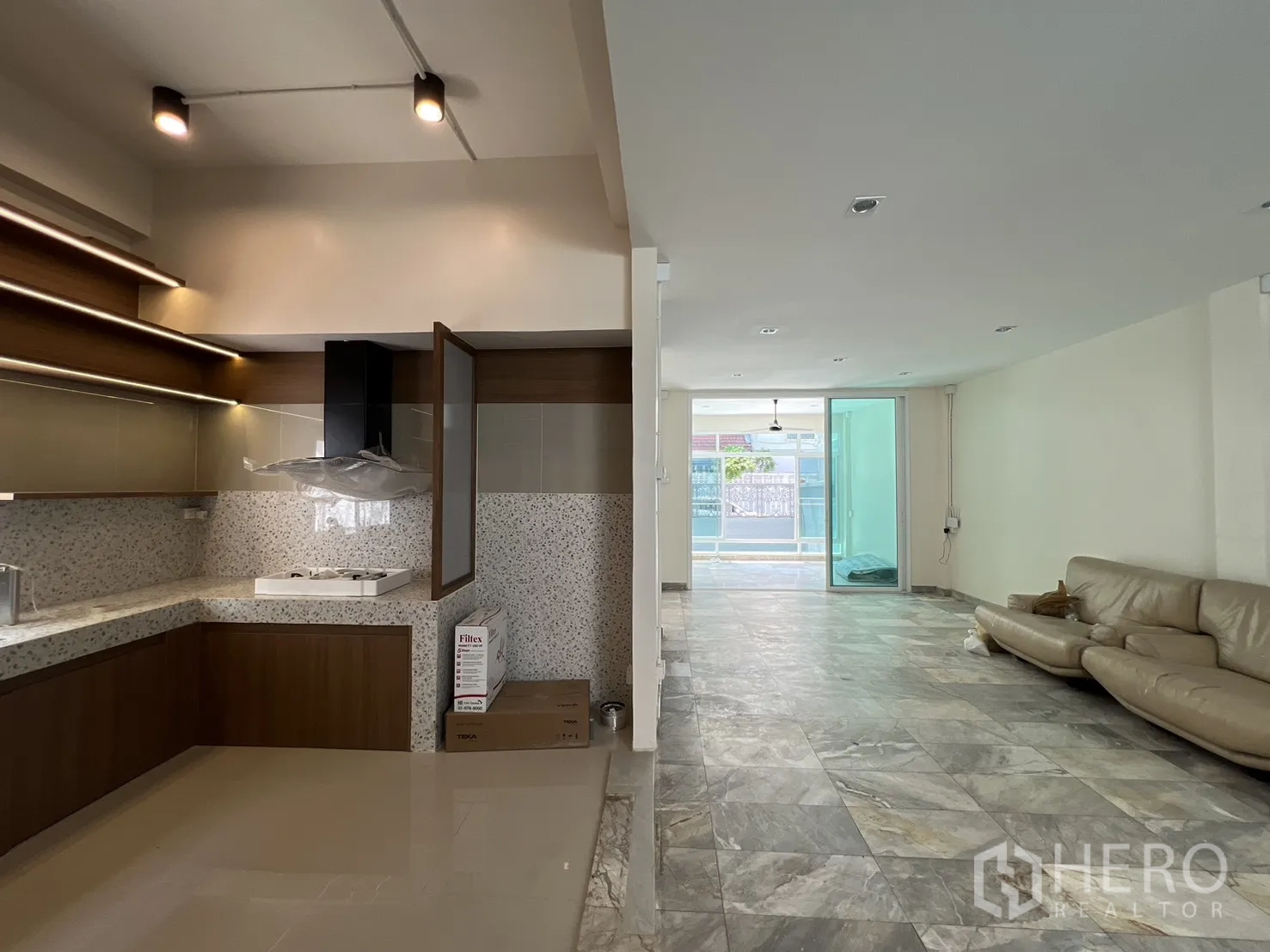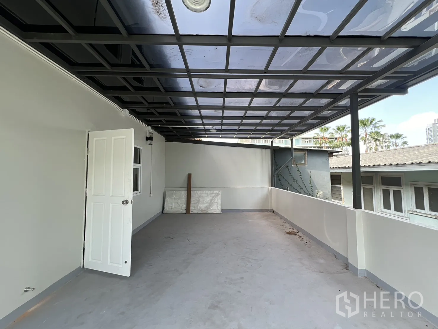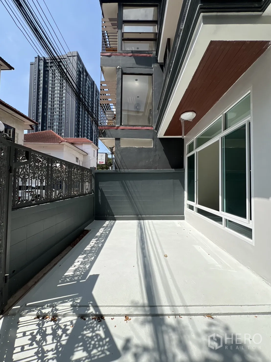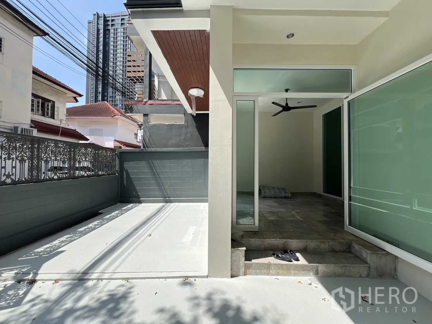 位于空堤区Phra Khanong的三层住办两用房,全面翻新。使用面积约300㎡,土地37平方哇(约148㎡,约0.09莱)。布局灵活,5卧4卫,明亮的开放式客厅与全新U型内置厨房。设有多处阳台、私密后院与带顶棚屋顶露台,适合休闲或小型聚会。精美铁艺围栏内可停放3辆以上车辆,居住办公两相宜。