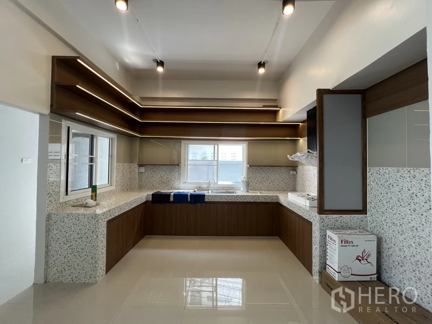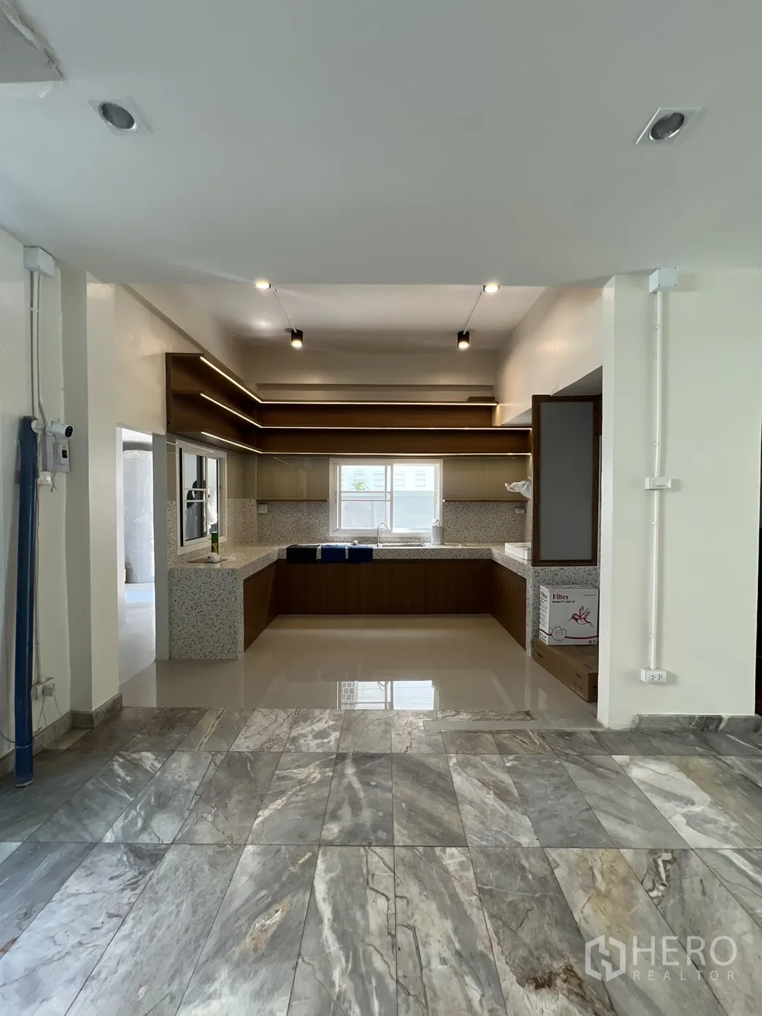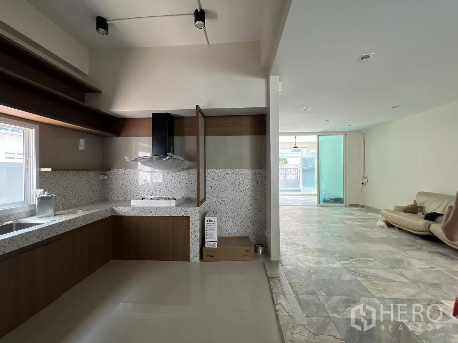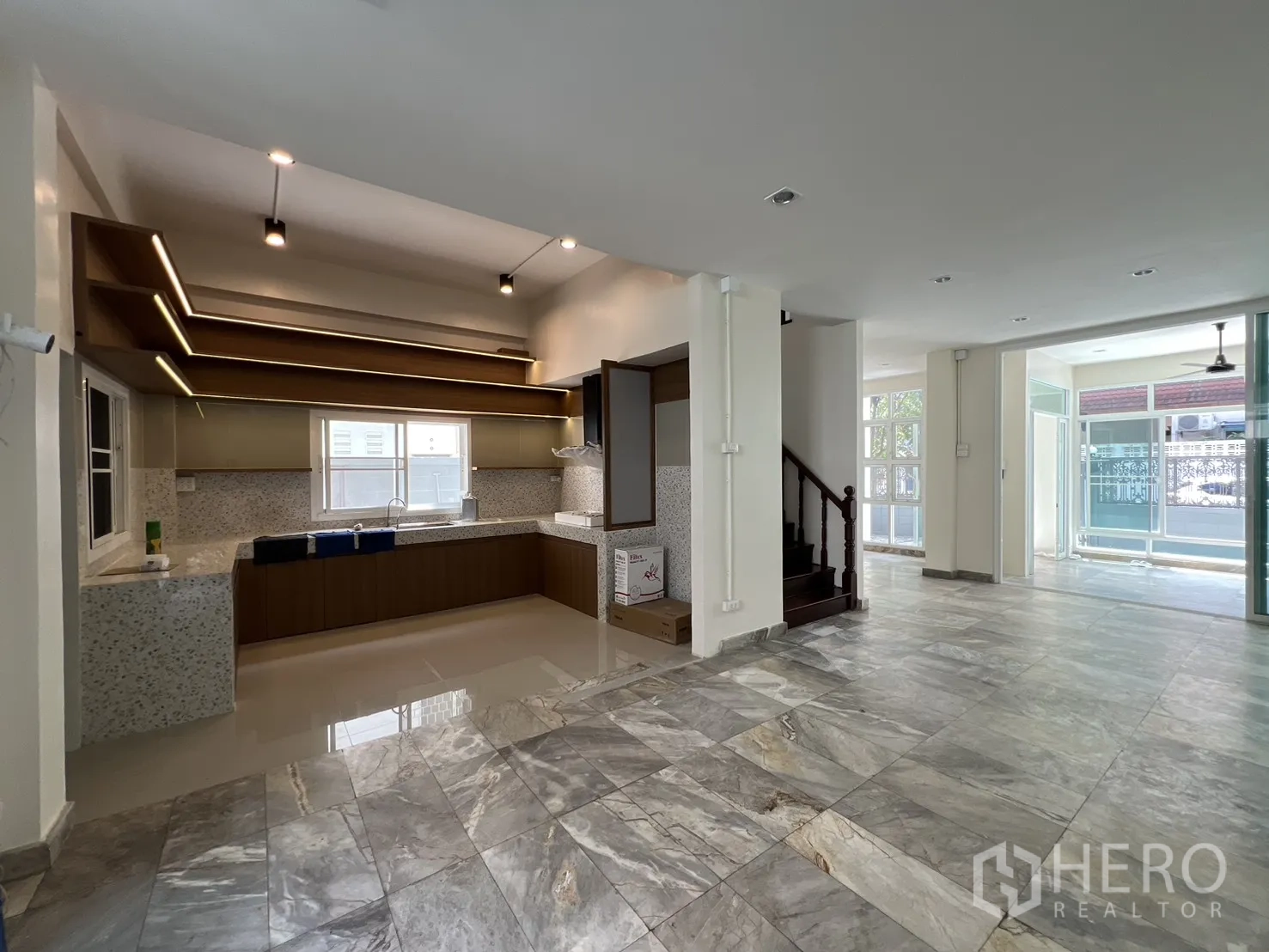 位于空堤区Phra Khanong的三层住办两用房,全面翻新。使用面积约300㎡,土地37平方哇(约148㎡,约0.09莱)。布局灵活,5卧4卫,明亮的开放式客厅与全新U型内置厨房。设有多处阳台、私密后院与带顶棚屋顶露台,适合休闲或小型聚会。精美铁艺围栏内可停放3辆以上车辆,居住办公两相宜。