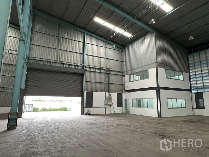 本物业位于Mueang Samut Prakan,提供出租的现代化仓库,仓储面积约3,050㎡,无柱大空间,净高约11米,适合高位货架或轻型生产。地坪承重约5吨/㎡。配套两层办公区约171.52㎡,含卫生间。设有升高式卷帘装卸口与宽阔混凝土前场,卡车进出、掉头轻松。土地面积1,000平方哇(约4,000㎡,约2.5莱),院区空间充裕,并配备三相电与MDB配电柜。