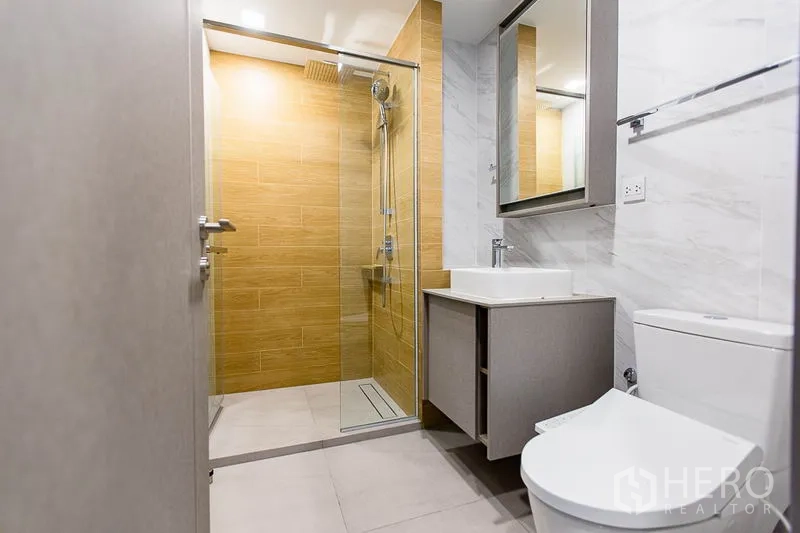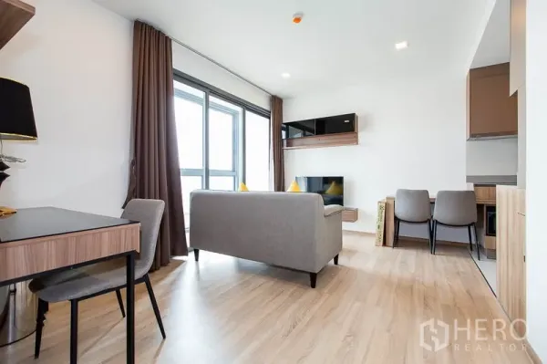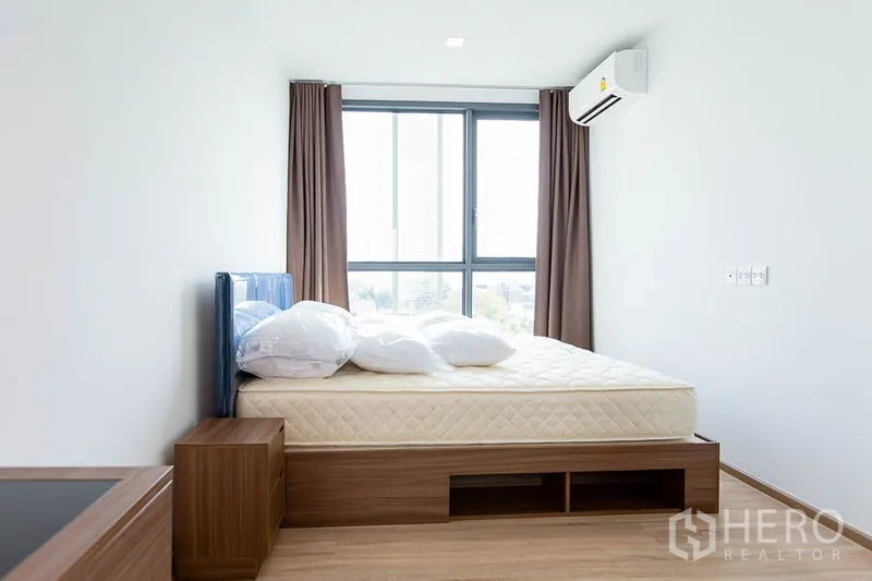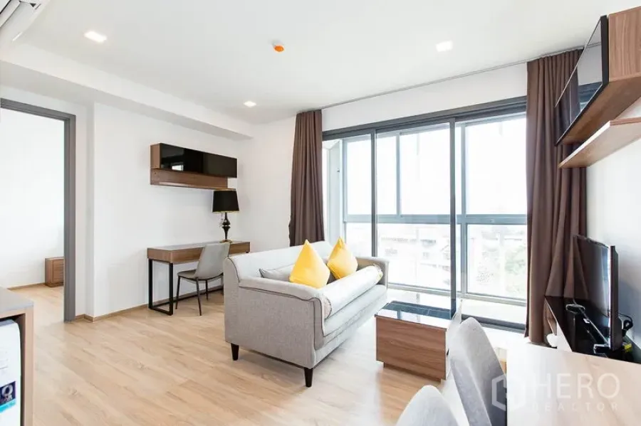 这套1卧1卫共管公寓,使用面积42平米,位于曼谷瓦他那区,距Ekkamai轻轨站仅数步之遥。宽敞起居区连接私密阳台,城市景观通透开阔;精巧厨房配备充足收纳与优质装置,满足日常烹饪所需。卧室设内置衣柜,舒适安静;现代化浴室带玻璃淋浴间与精致卫浴。