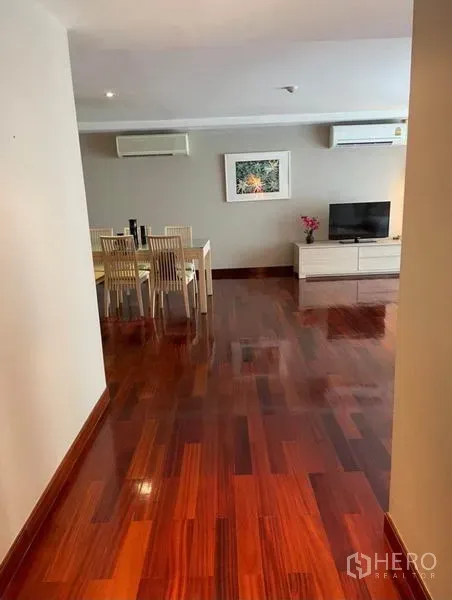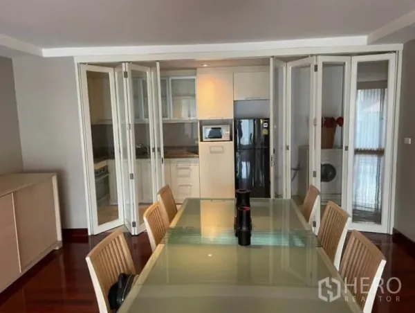 位于曼谷瓦他那区核心,这套102平米2卧2卫公寓兼具宽敞空间与城市便捷。通透的客餐厅与全配套厨房相连,收纳充裕;落地窗引入充足采光,通往私人阳台,可欣赏城市景致。两间卧室布局方正并设内置衣柜,卫浴配玻璃淋浴间与现代装置,舒适实用。