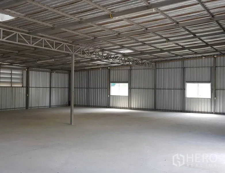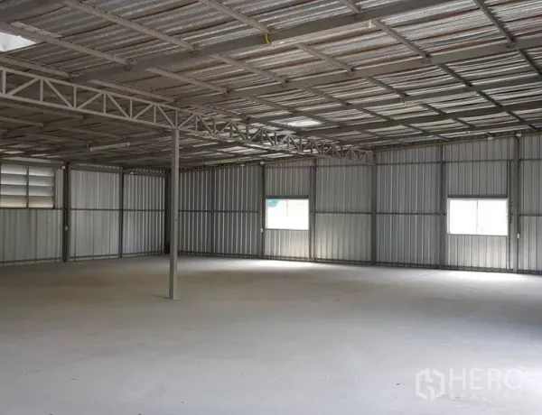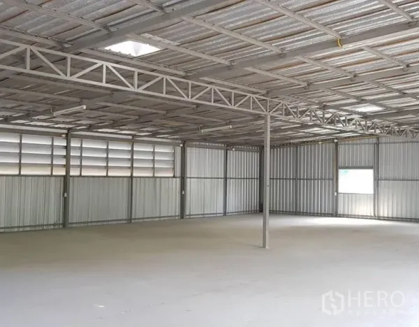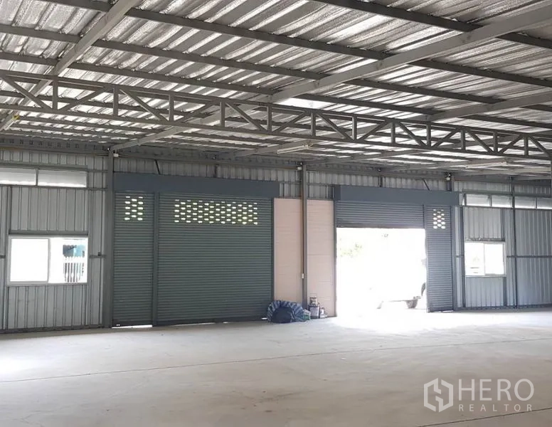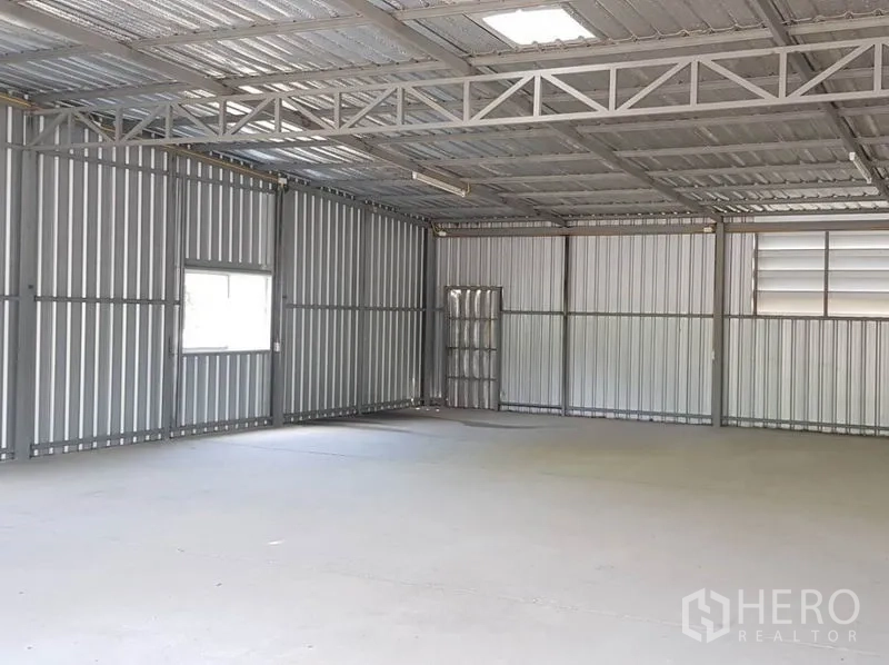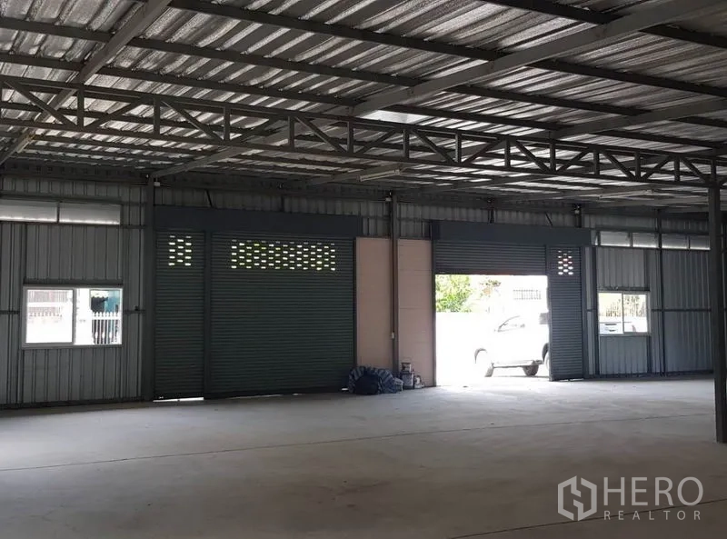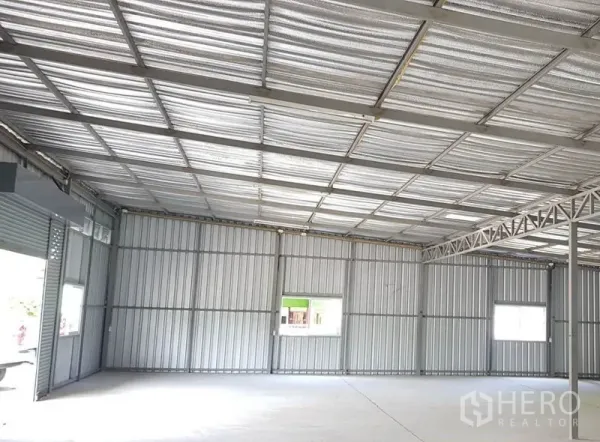 本仓库位于巴吞他尼府直辖县 Bang Dua 区域,实用面积约450㎡,占地150平方哇(约600㎡,约0.375莱)。院区封闭安全,卡车车道宽阔;仓内高挑大跨、抛光混凝土地面,配宽幅卷闸门与带顶装卸区。设有现场办公室与卫生间,采光与通风良好,适合仓储、电商履约、轻型加工及末端配送等多种业态。