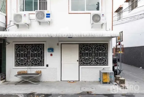 本房位于曼谷瓦塔那区的Ekkamai,出租3卧2卫办公住宅,使用面积约200平米。占地34平方哇(约136平米,约0.085莱)。室内采光充足,开放式起居区与大面积窗户相连;L形厨房配花岗岩台面与充足柜体。拱形阳台、前庭露台以及带门禁的院落,为会客、办公或停车提供灵活空间。