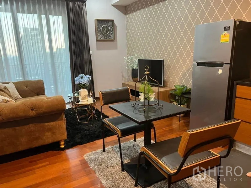 这套位于曼谷瓦他那区的出租公寓,实用面积56平米,2卧1卫,步行可到BTS通罗站。开放式客餐厅铺木地板,设计感特色墙与充足采光相得益彰;简洁厨房配不锈钢冰箱。私享阳台可眺望绿意与城市天际线。卧室配遮光窗帘,浴室为玻璃淋浴间,居住舒适便利。