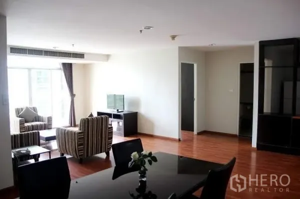 位于Waterford Diamond Tower,这套140平米2卧2卫公寓拥有宽敞客餐厅,连通可观景阳台。功能型厨房橱柜充足,卧室采光良好并配备衣柜,适合自住或投资,满足素坤逸核心区稳定租住需求。