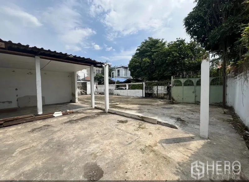 这座单层独栋住宅可用面积约94㎡,配有宽阔的硬质庭院和半露天廊下,可停放多辆车或作为户外工作区。院落全围合并带小花园角落,格局通透,适合按需翻新为居住、家办、工作室或小型咖啡空间。临近素坤逸路,距离BTS Punnawithi站便捷可达。