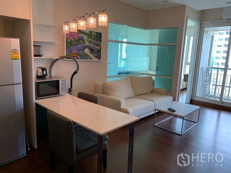 坐拥通罗核心地段,这套1卧1卫公寓提供约43平米高效布局,位于曼谷瓦塔那区。客厅采光充足,落地窗通透明亮;紧凑实用的开放式厨房配备灶具与充足收纳;卧室带嵌入式衣柜;卫浴为玻璃淋浴间;私享阳台可欣赏城市景致。公区设施完善:屋顶泳池、设备齐全的健身房、安全大堂、门禁系统、24小时安保与停车位。
