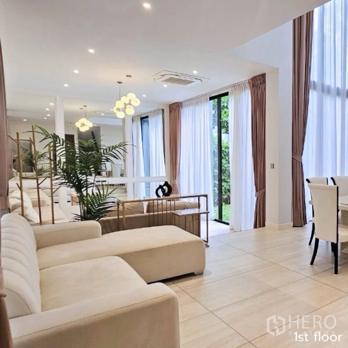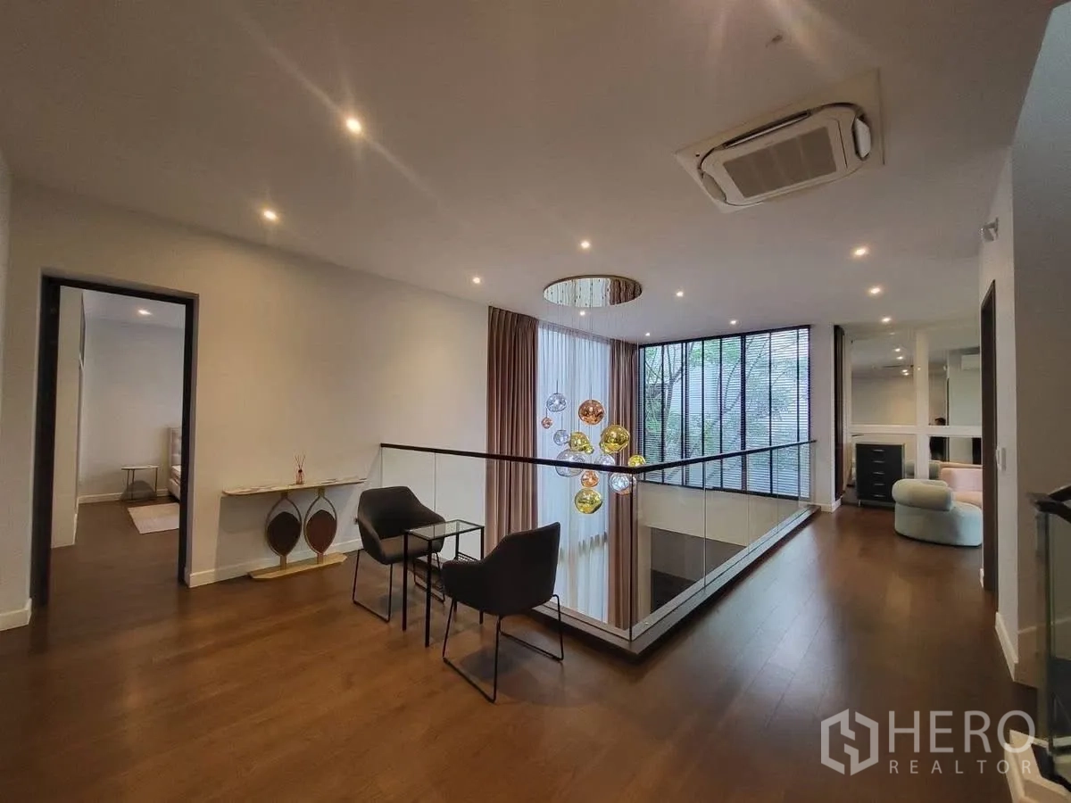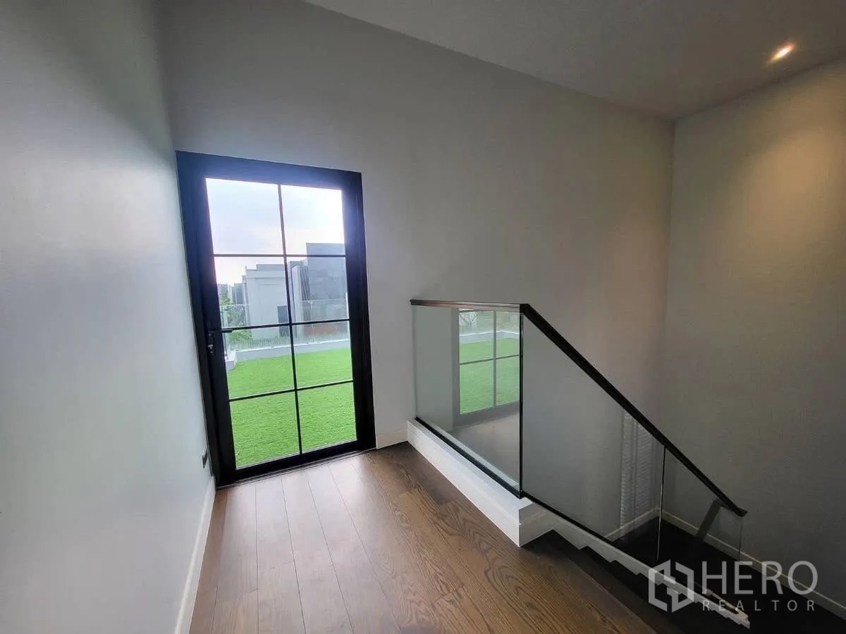 这座位于邦甲比的现代4卧5卫独栋住宅,实用面积约430平米,土地69平方哇(约276平米,约0.17莱)。挑高客餐厅与落地窗采光充盈,夹层休闲区提供灵活家庭空间。厨房配燃气灶与优质橱柜,卧室宽敞并设步入式衣帽间与独立更衣区。卫浴呈水疗风,配置双台盆、雨淋花洒与独立浴缸。屋顶露台铺设人造草坪适合聚会,门廊下设车位并配备EV充电器。
