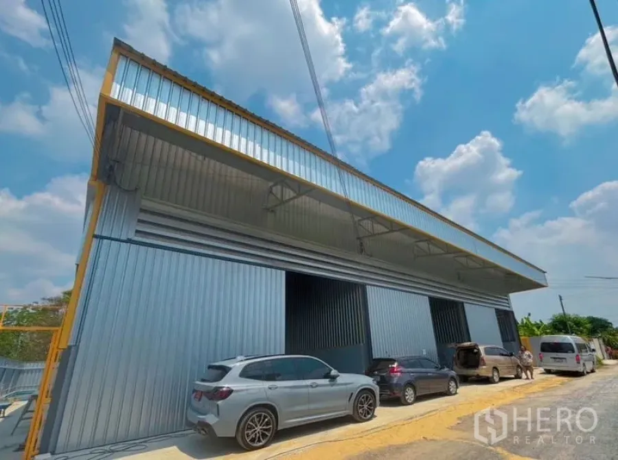 这座位于巴吞他尼市区的仓库出租,使用面积约220平方米,挑高通透的桁架屋顶与宽幅滑动大门,便于卡车装卸。耐磨混凝土地坪、明亮LED照明和良好通风提升运营效率;带窗的双层办公室可作为管理与会议空间。前方设有装卸平台与停车位。