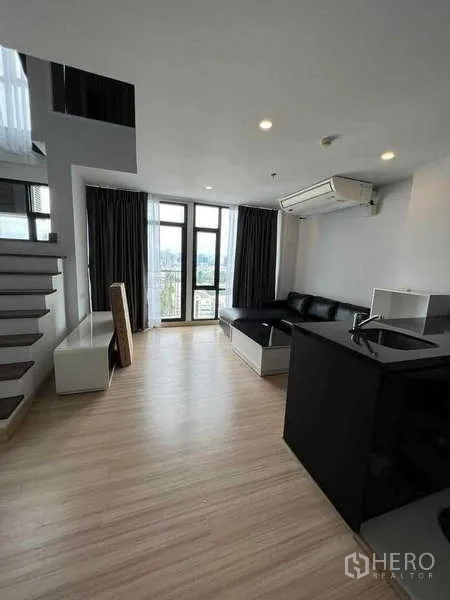 位于Bangkok Horizon Sathorn – Narathiwas,距BTS Chong Nonsi仅数步。此公寓70平米,1卧2卫,采光充足,内设楼梯,落地窗与阳台框出开阔城市景观。开放式客厅与带吧台的现代厨房相连,黑色石材台面便于烹饪与社交。卧室安静舒适,俯瞰天际线;主卫配浸泡浴缸,另设一间客卫,日常更便利。