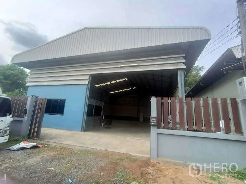 位于空銮的连体仓库出售,总使用面积约1,200㎡,土地170平方哇(约680㎡,约0.43莱)。室内挑高、无柱大跨,带天窗采光,装有自动卷闸门,装卸高效。设有夹层与一间多功能房,可作办公室使用;水电即刻可用,含三相电15安培。每个仓库内各有一间卫生间,室外另配两间卫生间,前方院落可停车和车辆调头。