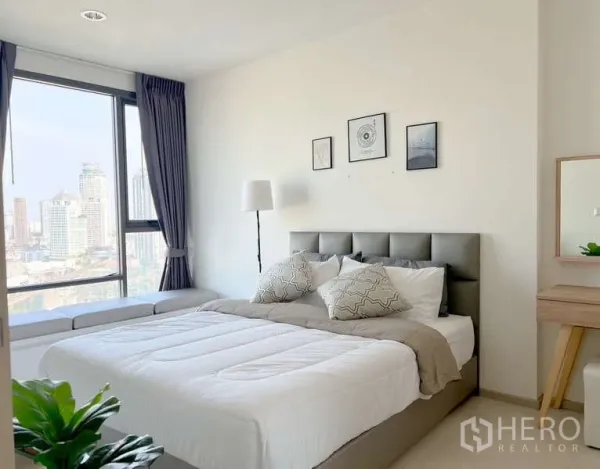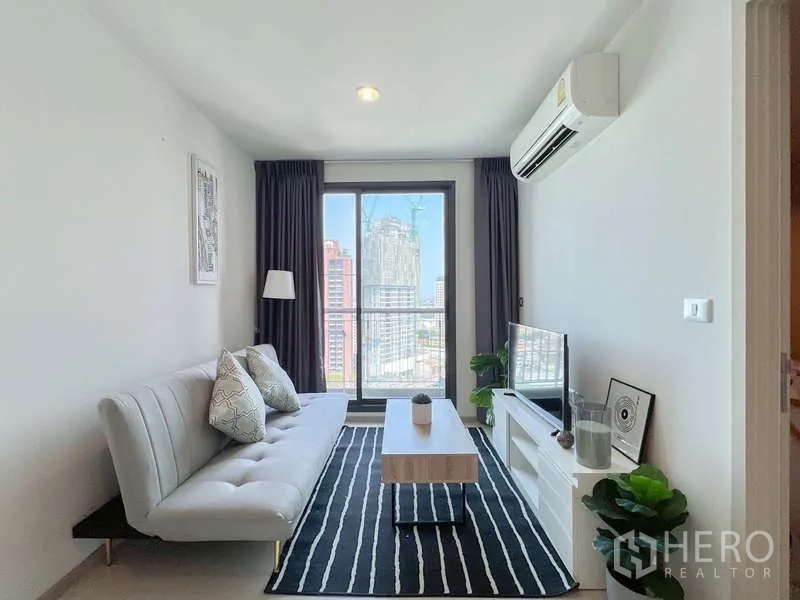 这套位于曼谷空堤区的45平米1卧1卫公寓,布局方正明亮,客餐厅一体,配备实用厨房与玻璃淋浴的现代卫浴。推拉门通向私家阳台,城市景观一览无余;内置收纳与空调提升日常舒适度。项目提供24小时安保、停车位、健身房与清爽泳池,生活设施完善。