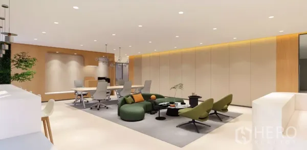 72平米高楼层精装办公,拎包即用,距MRT拉玛9站仅数步之遥。开放式布局可配会议室,落地窗带来开阔城市景观。大楼提供访客休息区与专业前台接待,支持公司注册,配套充足车位、门禁安保与高速电梯,满足高效与体面的商务需求。
