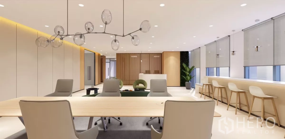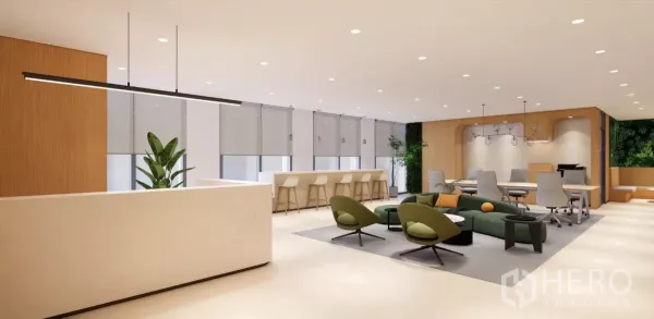 租金约1,100泰铢/平米,另有32–111平米灵活面积可选。步行可达拉玛九中央广场(Central Plaza Grand Rama 9)、Fortune Town IT商场与G塔;短距可至The Street Ratchada、Esplanade Ratchada及泰国文化中心。医疗配套有拉玛九医院与曼谷医院。运动与休闲可前往丁登的泰日青少年中心。优越区位,非常适合初创公司、中小企业与区域团队办公。