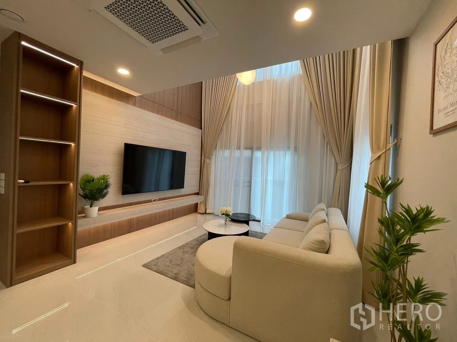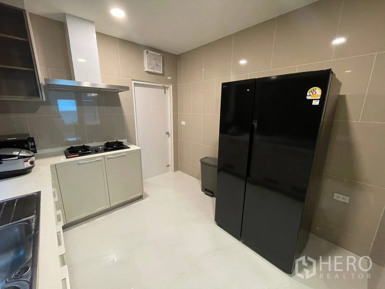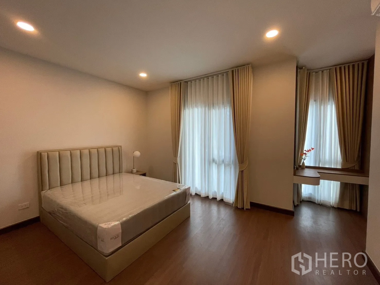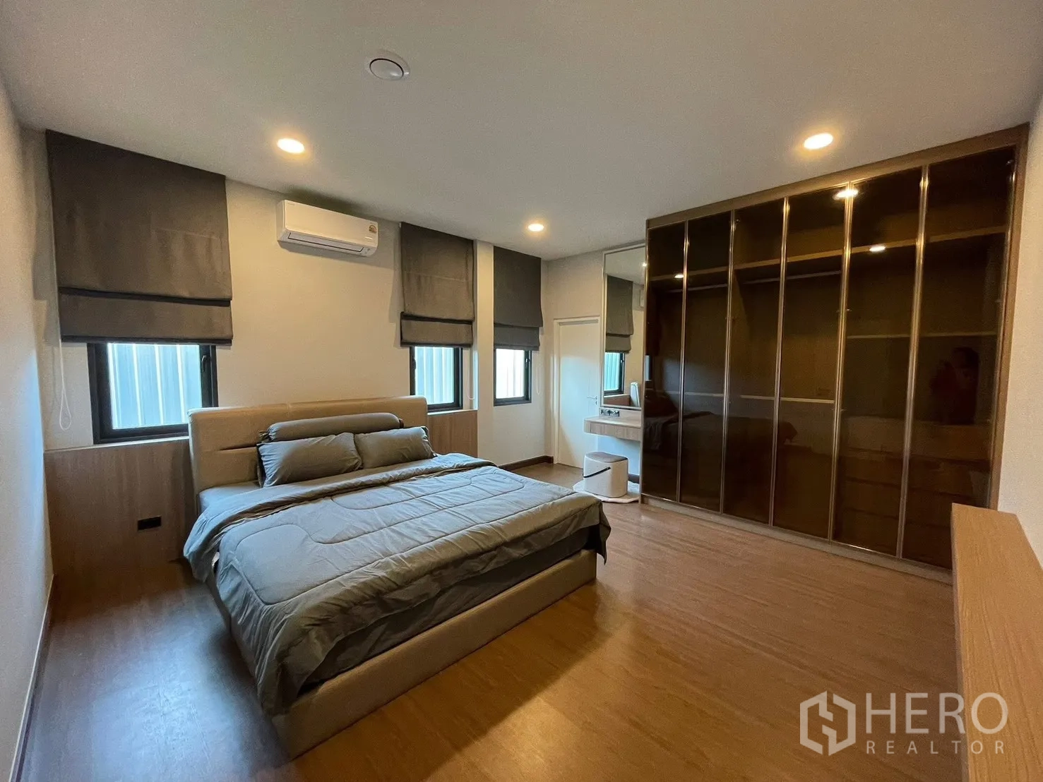 位于北榄府邦普里 The City Bangna 3 社区的独栋别墅出租,使用面积326平米,土地68平方哇(约272平米,约0.17莱)。户型为4卧5卫,另有女佣房与3个车位。全屋现代木质风格,设大屏电视背景墙、丰富的内置收纳与步入式衣帽间。配套家电齐全:75/65寸电视、洗衣机、冰箱、抽油烟机及电动大门。可接待外籍租客;允许携带不超过7公斤的小型宠物(最多2只);仅限室外吸烟。