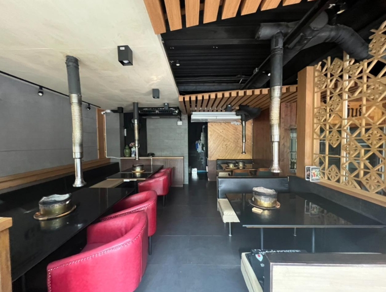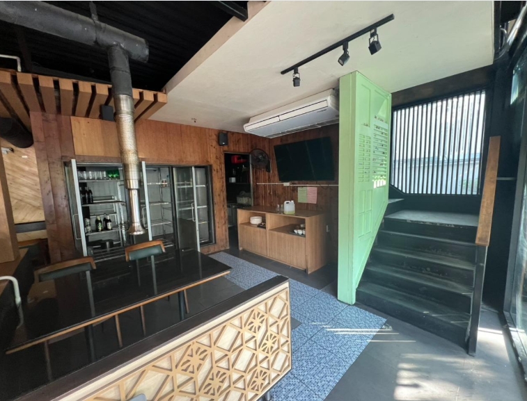 把品牌落位在通罗核心,这处位于曼谷瓦他那区的双层零售空间约200㎡,临街玻璃立面醒目,带有覆盖式露台与灯串氛围,现场配停车位,日常到访更便捷。室内保留餐饮装修:卡座、内置餐桌、排烟管、服务吧台与储物区,便于快速启用为咖啡馆、餐厅、展厅或工作室。