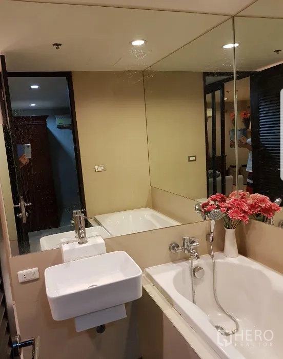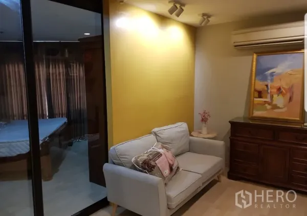 这套明亮的1卧1卫公寓,实用面积45㎡,位于曼谷瓦塔那区通罗生活圈核心。客厅采光充足,落地窗与温暖木地板相得益彰,连通精致的开放式厨房与带城市景观的私人阳台。卧室舒适并配有嵌入式衣柜,浴室设计现代,玻璃淋浴间干湿分离。全屋空调、充足收纳与优质装饰,让您拎包即住。