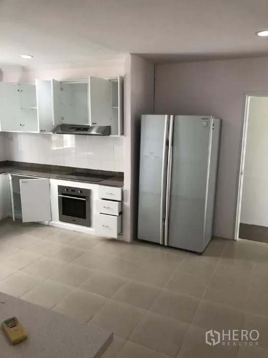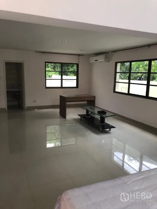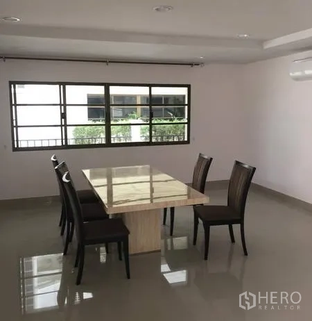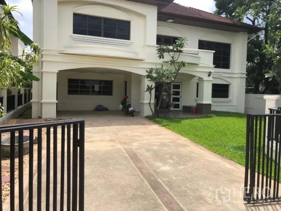 位于暖武里府帕克雷的Nichada Thani高端社区,独栋别墅出租。室内使用面积约300平方米,土地面积135平方哇(约540平方米,约0.34莱)。布局为3卧室3浴室,客餐厅一体空间明亮通透,功能厨房便于日常烹饪;私家花园与车道停车,满足家庭舒适生活所需。