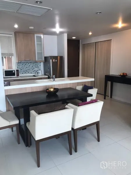 这套位于拉差贴威的2卧2卫公寓,实用面积约90平米,采光充足,布局方正;客厅明亮通透,开放式厨房带嵌入式收纳,私家阳台可欣赏城市景观。公区配套完善,设有健身房、游泳池、安全大堂与停车位。地段通达,步行可至BTS奇隆与MRT碧武里,临近机场快线玛卡山站,出行高效便捷。