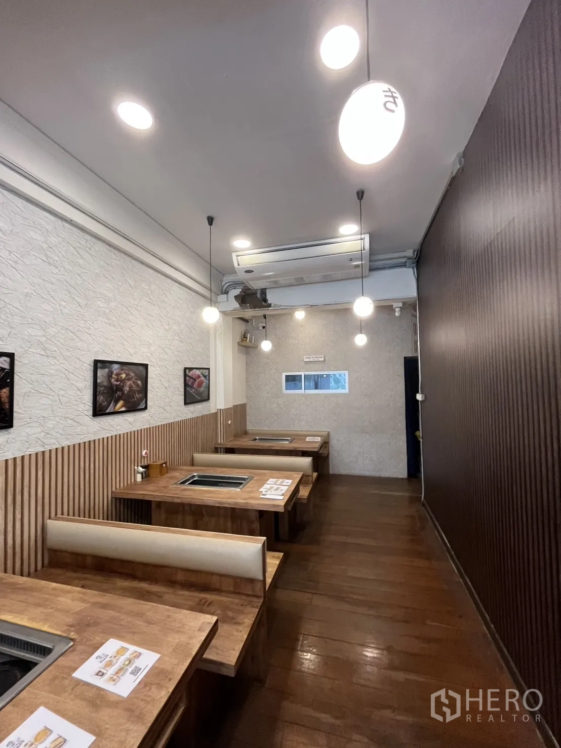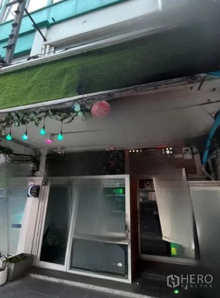 这间位于素坤逸的200平米零售商铺出租,距BTS通罗站仅数步。照片展示了明亮的玻璃正门与推拉门、砖纹立面、红色灯笼点缀,以及适合安装霓虹招牌的门头,街头曝光度高。开放式格局灵活,可用于咖啡店、精品店、甜品吧或展示厅,并可设置外带窗口与陈列区。