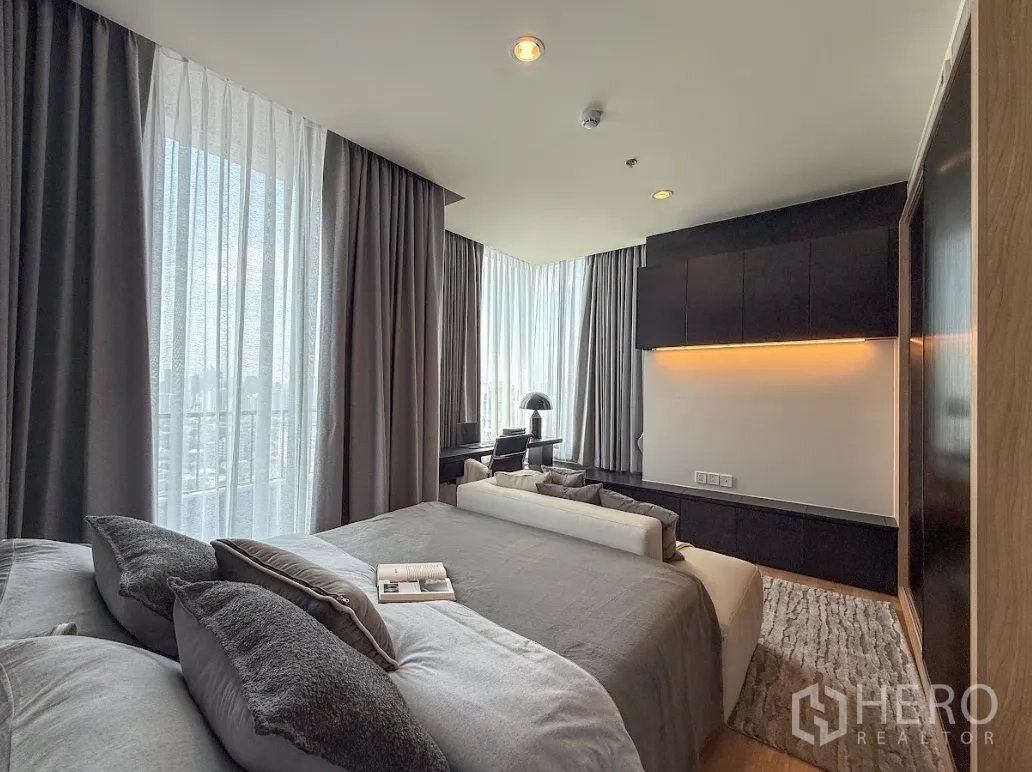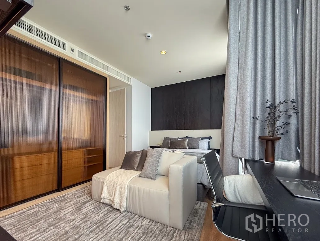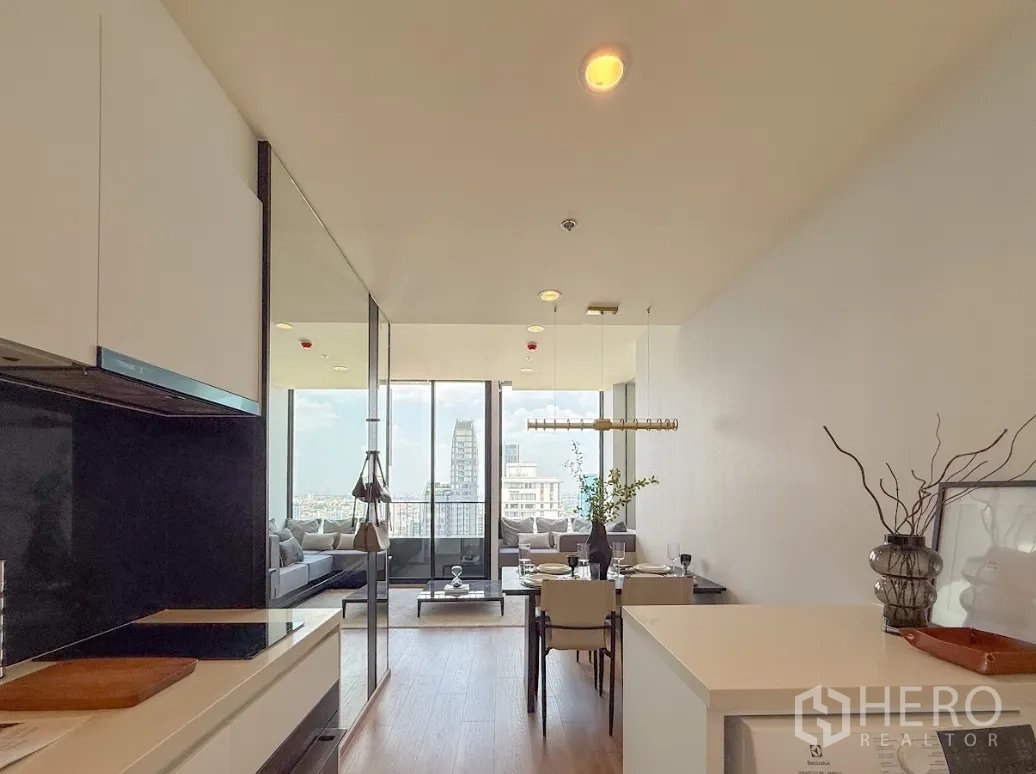 这套位于曼谷瓦他那区通罗的两卧一卫公寓,实用面积约52平方米,户型方正。开放式厨房与餐客厅连通,动线顺畅,外接私享阳台,采光与通风俱佳。两间卧室比例恰当,便于收纳与布置;卫生间居中,日常使用更便利。适合都市白领、小家庭或寻求高租赁需求的投资者,靠近BTS通罗站,出行便捷。