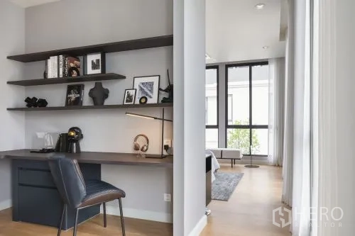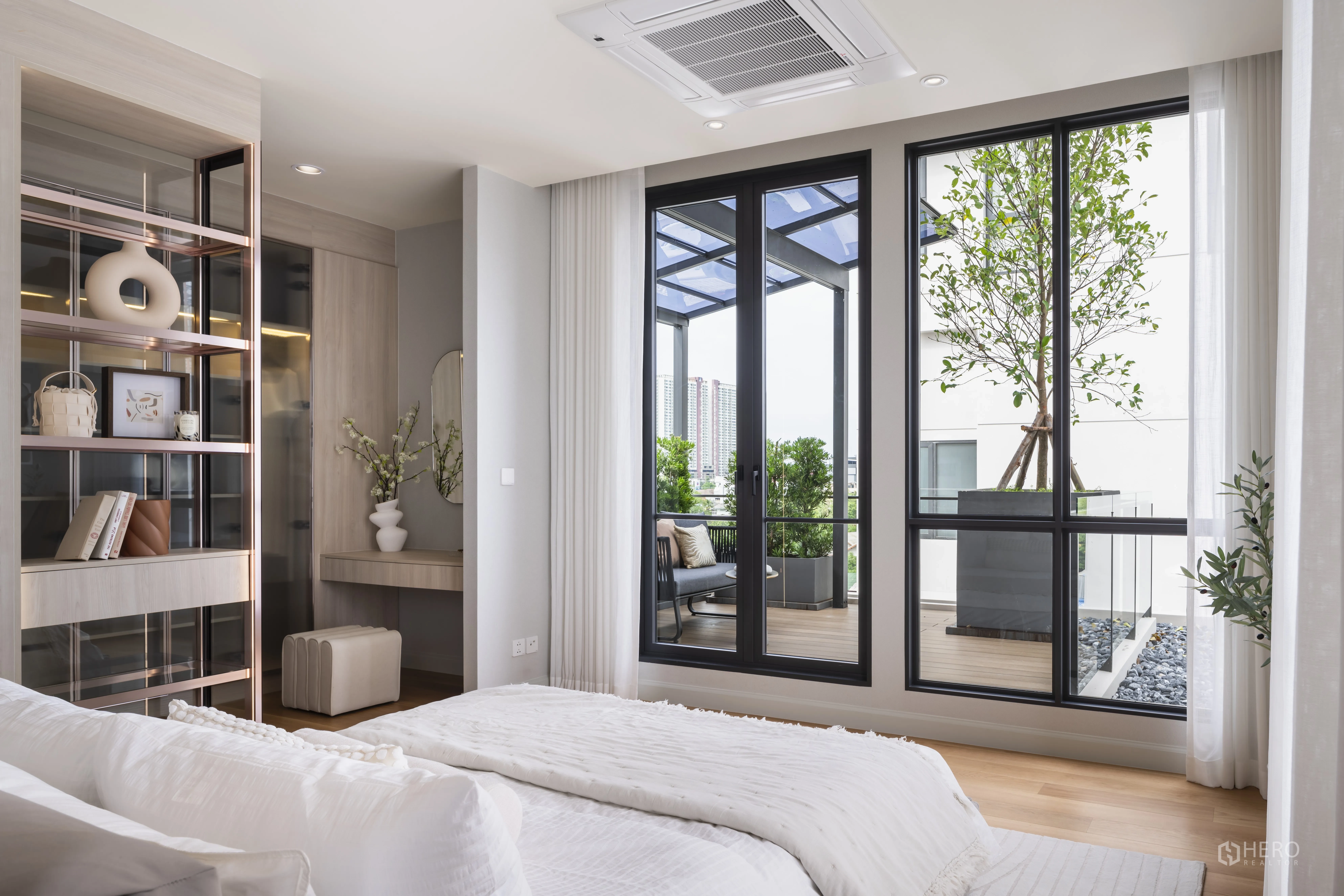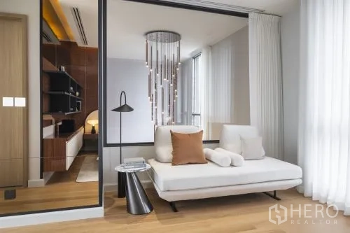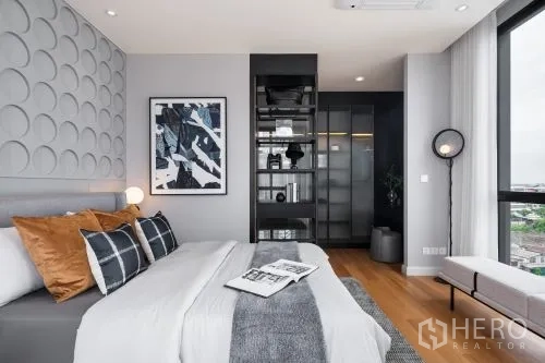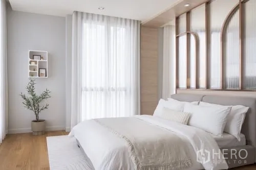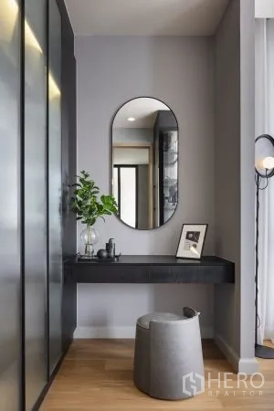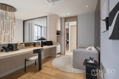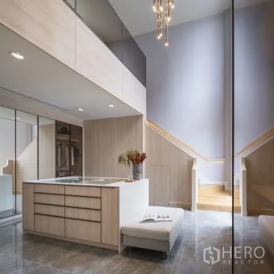 细节考究:定制发光玻璃展示柜、双圆形镜面与内建书桌,可作书房或梳妆角;中性色调、筒灯与天花送风口营造宁静现代氛围。区位便利,轻松通达 Central Plaza Rama 3、Chalerm Maha Nakhon 高速公路与 Bhumibol Bridge,快速连接曼谷各区。若您正在寻找空间宽敞、设计雅致且位置便捷的城市住宅,这套独栋别墅非常适合购买。欢迎咨询购买与看房。